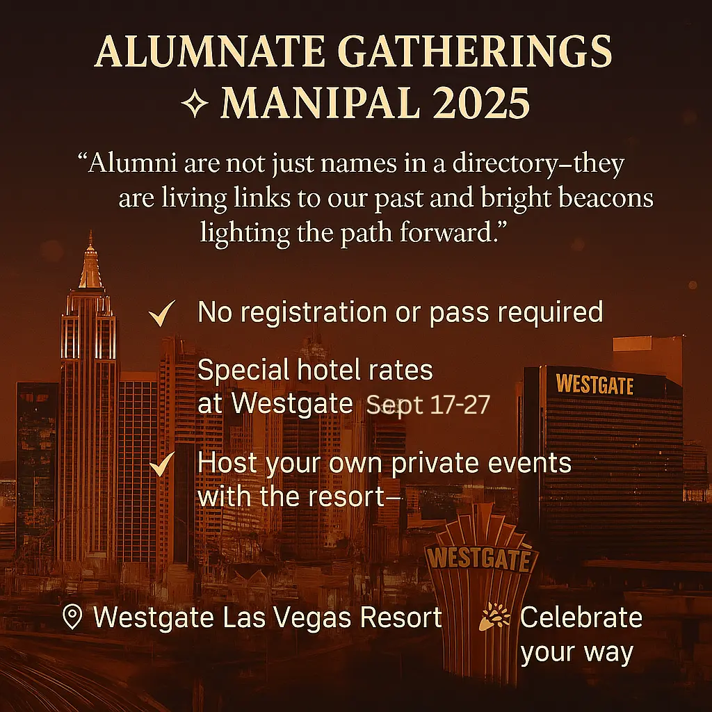 Alumnate Gatherings @ Manipal 2025 is your opportunity to reunite with classmates, friends, or colleagues in Las Vegas β without attending the event.